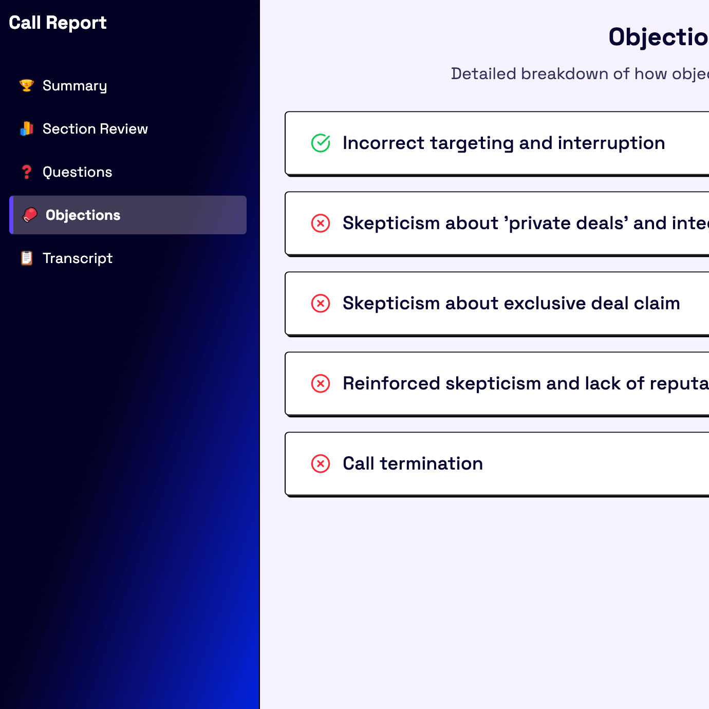 Every call is automatically scored against clear selling criteria, giving you an objective sales candidate assessment you can trust.