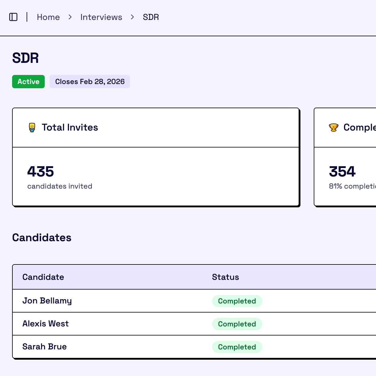 Proceed with high-scoring candidates and interview only the reps who’ve already proven they can sell.